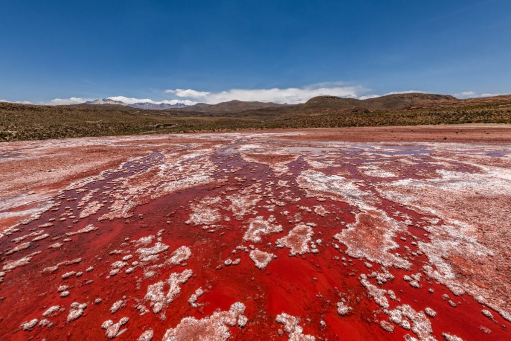 Situada en la región de Tarapacá, la Laguna Roja es un espectacular cuerpo de agua que destaca por su vibrante color rojo, resultado de la alta concentración de minerales.